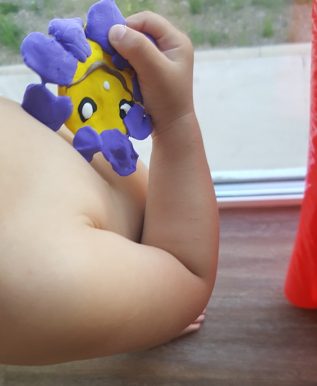 Слепили такие фигурки (ребенок помогал отрывать пластилин и катать шарики):