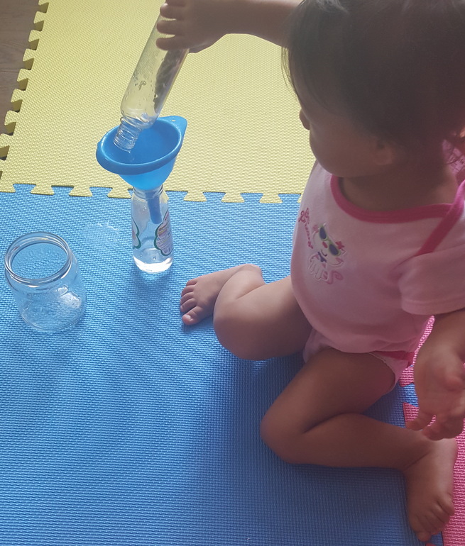 Учились переливать жидкость с помощью воронки: