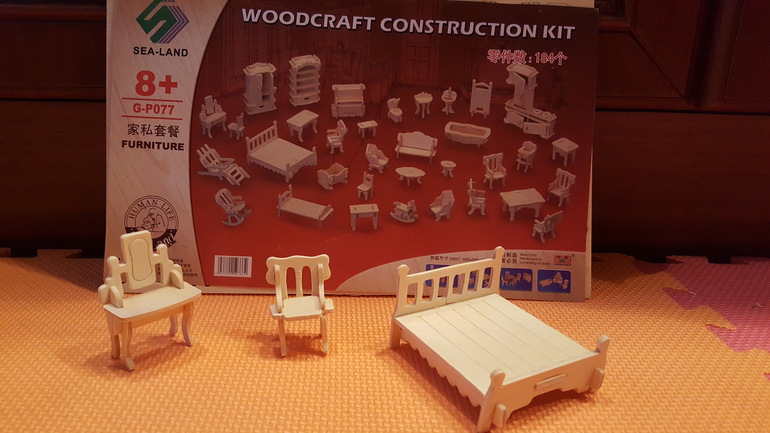 Помогала выдавливать детальки из такого китайского набора (мебель очень пригодилась в сюжетных играх):