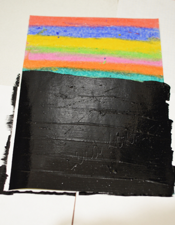 Художка ( красим, рисуем , придумываем новые способы рисовать)Многие знают про такую вещь как гравюра для детей, где скребешь палочкой и стирается верхний слой, в итоге получается рисунок. Что-то подобное сделала в дом.условиях))) Берем восковые карандаши и закрашиваем ими картонные листы, потом всю эту красоту покрываем черной акриловой краской, в которую совсем чуток добавили средство для мытья посуды.