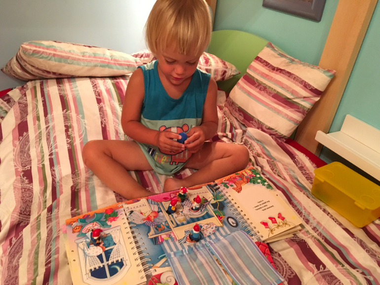 Играли с такой вот книжечкой - Гномики в домике. В ней каждый разворот закрыт на свой замочек. Достали гномиков, пересчитали, сравнили, чем похожи, чем отличаются.