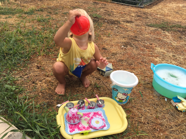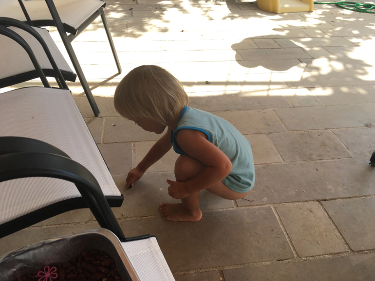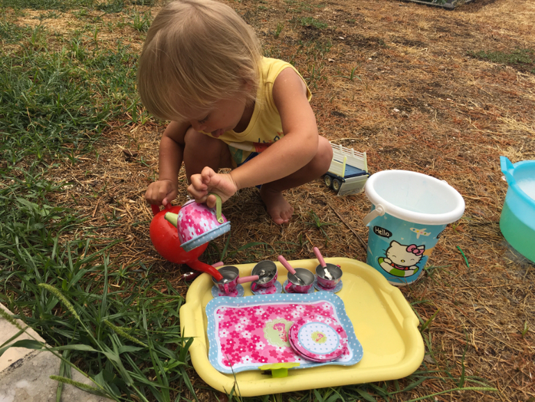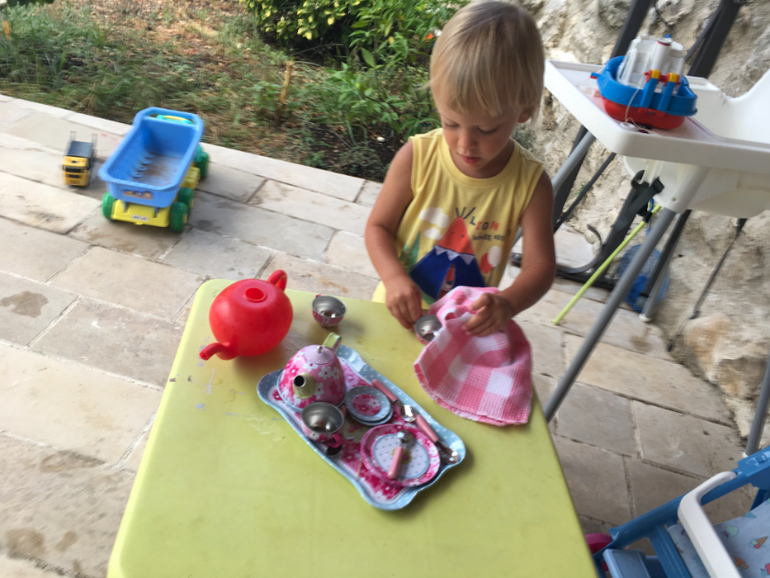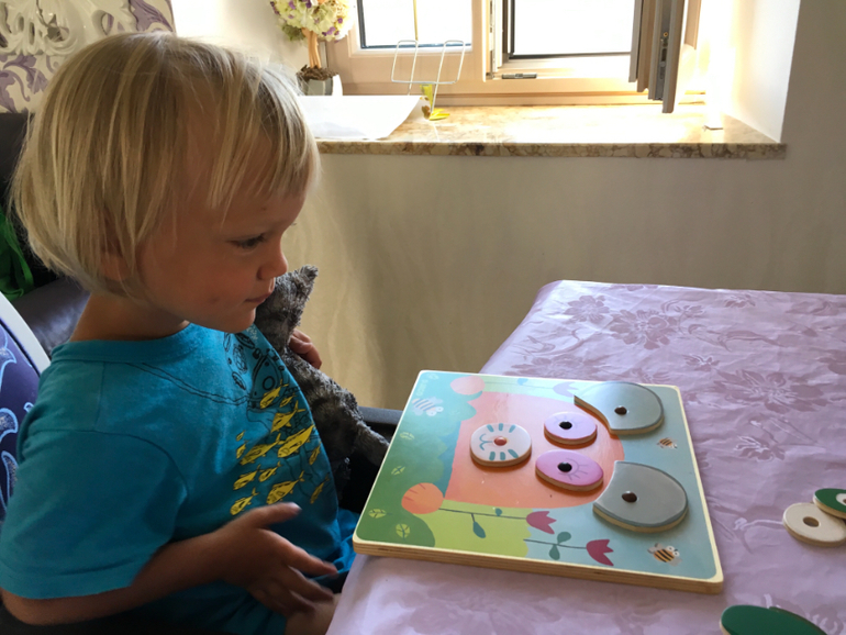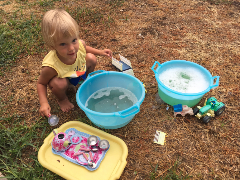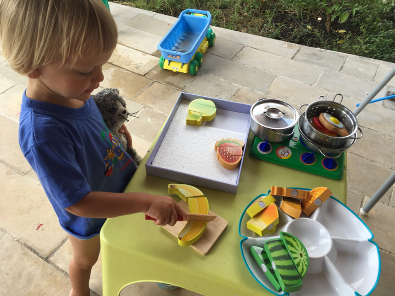 Через день пара-тройка упражнений Монтессори. В основном занимались водными процедурами - помывка машин и посуды, различные переливания, разливания и т.д. Тренировали правильный захват с помощью ручки-самоучки - прогресс налицо по сравнению с весной, играли со штампиками, резали.
