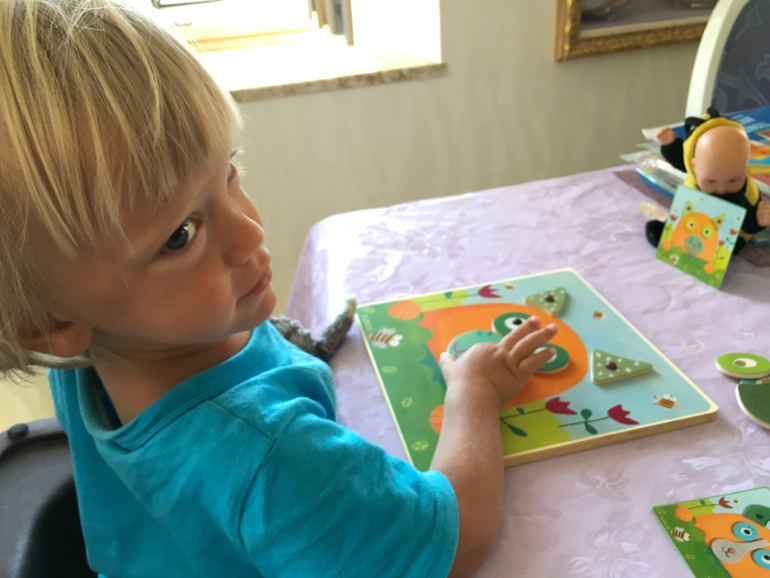 Идёт туго. Но трусы и шорты научились натягивать. И разобрались с сандалиями.