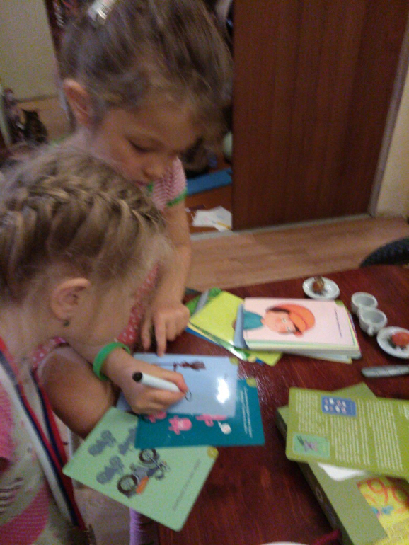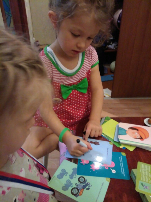 Удобно, что можно рисовать маркером на карточках, потом стирать и снова рисовать - супер! Уже дома Славка и ее двоюродная сестрёнка Полина ещё долго играли с этими карточками.