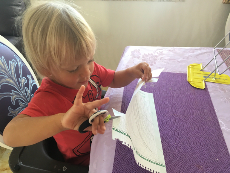 Почти что ежедневно уделяли время ножницам и им подобным. Начали как обычно с бахромы у коврика ( первое фото).