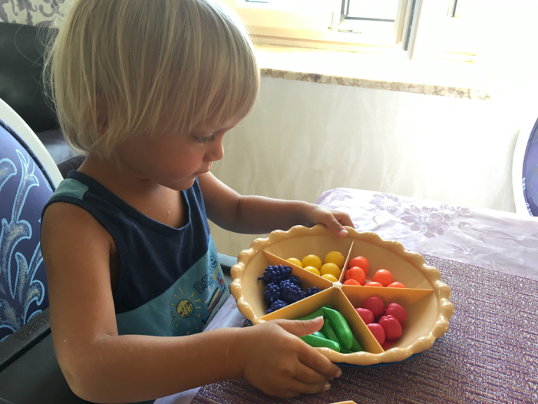 И такой пирожок со сменными дисками очень полюбился. В нем разные виды классификации, цвета, количества - все в одном флаконе. Приносил почти каждый день, хотя каких- то особых природных задатков и предпосылок логического мышления, которые были уже очевидны в этом возрасте у старшего сына, пока не замечаю.