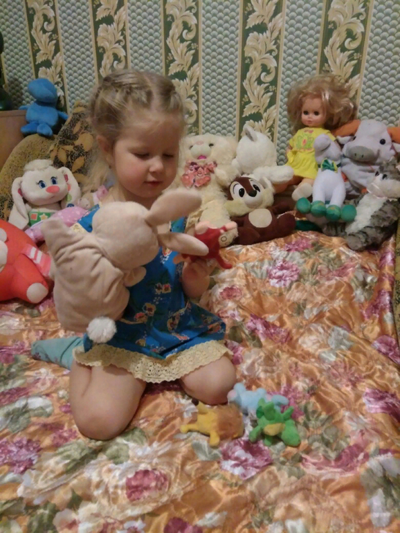Слава не выходит из комнаты! Сразу видно, по каким игрушкам она скучала больше всего: 1,5 часа ребенок строил из лего! как ни зайду - сидит, бормочет себе под носик что-то, хихикает)))) После прогулки малышка взялась за дело - притащила чемодан с и стала знакомить крольчонка Робби из с героями нового набора. Это умора, слушать диалоги игрушек в Славкином исполнении)))