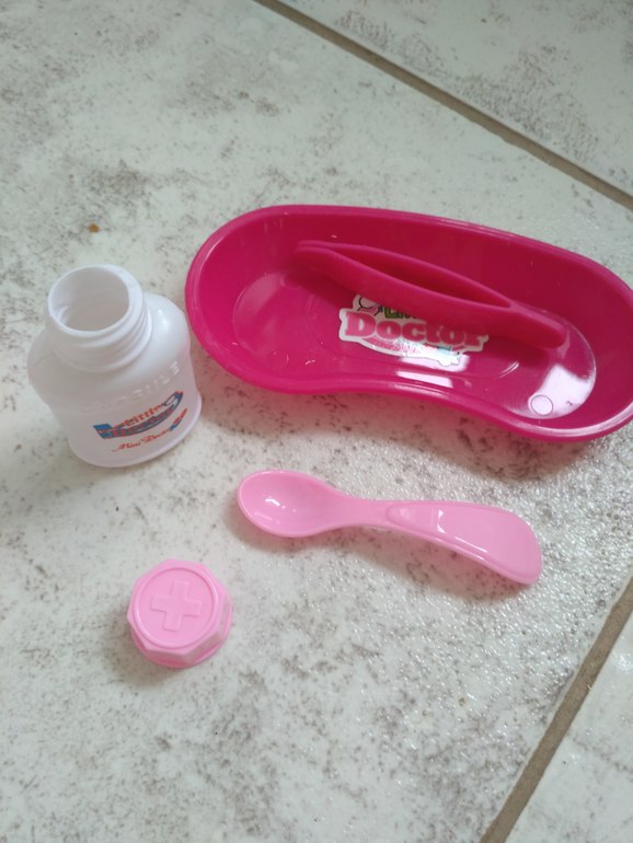Вообще мои дети любят откручивать крышки. Ещё у нас есть настоящие бутылочки из под лекарства, ложечки, стаканчики, так что наши юные доктора одним лекарством не ограничиваются :