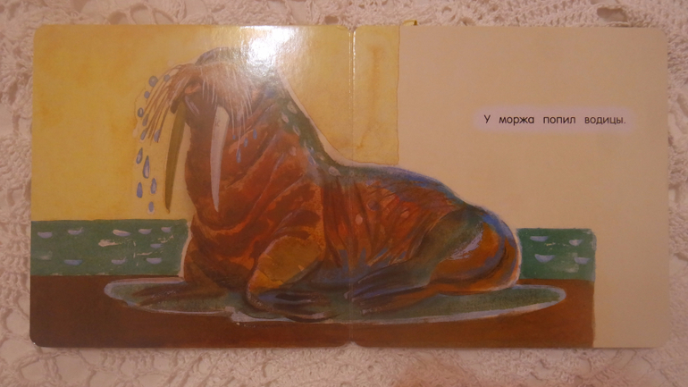 Идея книги отличная! Легкое стихи для детей от 1-4 лет разложили по одной фразе на разворот и проиллюстрировали большим изображением животного.