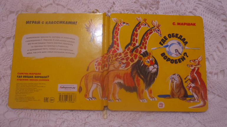 Зная, что многие напишут , что с книгой все отлично уже много лет....но сильного вандализма за своими детьми я не наблюдаю, просто предупреждаю....Менее , чем за неделю книга осталась без игровых элементов...К слову сказать, это стихотворение у нас было в сборнике...
