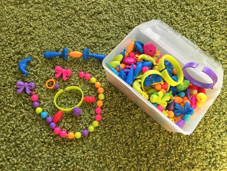 Вторым у нас появился набор бусин, для изготовления украшений. Играем часто и подолгу.