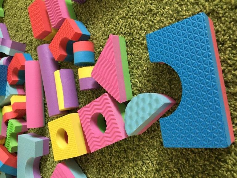 Но.... как бы я не старалась, они совсем у нас не шли. Я строила - она смотрела. Брали в ванную и строили для водоплавающих остров, делали тематические игры с ними ( строили из классических еду, для кухни), буквы и цифры.... ничего нас не увлекло.