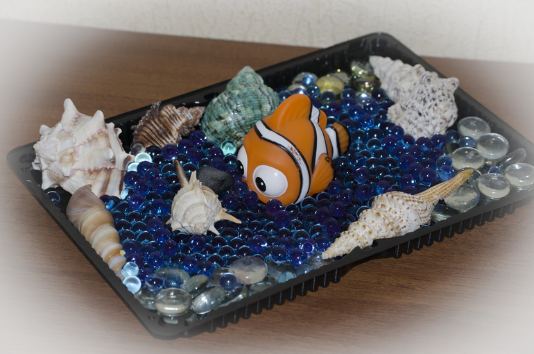 Что немало важно гидрогель не пачкается абсолютно, поэтому потом не придется отмывать весь дом)) ну и все остальное содержимое (ракушки, камушки) мыть не потребуется.
