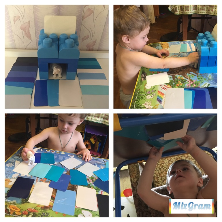 Детские игры и развивающие программы компьютера ( а так же iPhone / iPad)А мы сегодня построили берлогу для белого мишки) Мирослав очень любит всех мишек) Я рассказала, что Белый мишка живет на севере, там очень холодно, поэтому мы накрылись пледами и отправились в океан. Карточки синего цвета из творчества с пелёнок, были океаном, а карточки белого цвета, были льдинами, по которым мишка должен был добраться до берега. Все получилось, мишка добрался до своего домика, а карточки-оттенки мы собрали и подобрали цвета к берлоге. И видимо, следуя примеру мишки, Мирослав отправился под стол) в свою берлогу. Я ещё раз показала оттенки синего и белого. давала по одной карточке, сын решил их «приклеить» под стол, но они не клеились( Мирослав не растерялся, просунул их в щель и получилась интересная конструкция) Вечером у нас был интересный эксперимент, тоже с синим цветом. Вы когда-нибудь заглядывали внутрь подгузника? Я в теории знала что там) Идею подсмотрела в Инстраграме. Вытащила наполнитель из подгузника (2 шт), подготовила баночки с крашеной синей водой (гуашь). Содержимое положила в нашу надувную песочницу и показала, как белый наполнитель впитывает в себя синий цвет и сам становится синим. Подобные эксперименты я готовлю втихаря, что бы Мирослав не разбросал все раньше времени, но сегодня спалилась) Сын бегал под ногами, ему не терпелось начать. Я ему сказала, что нужно ещё немного подождать, пока ничего не трогать и тогда мы с ним интересно поиграем) успокоился, терпеливо ждал) был послушным, только бы мы поиграли) сказала постелить простынь на пол - постелил) сказала сесть- сел) первую баночку выливала я, а вторую Мирослав) но первый блин комом, я не сразу нашла наполнитель шариками, и одну баночку я вылила в вату 😅 Но потом сориентировалась и у нас получился классный сенсорный материал, типа мелкого гидрогеля. Ну и неописуемый восторг Мирослава) пора начинать проводить опыты) сын готов)