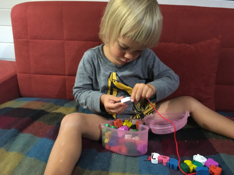 Пыхтит, старается. Ещё бы, подарок - бусы для папы.