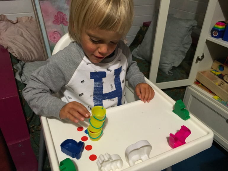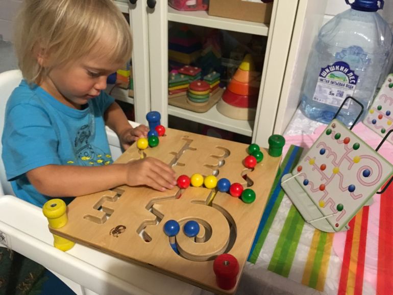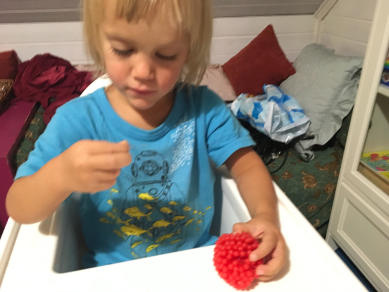 Опутала нитками этот мячик. Выковыривал долго и очень усердно) Остальная мелкомоторная деятельность как-то сошла на нет - то ли перерастаем, то ли оказалась вытесненной другими не менее полезными занятиями.