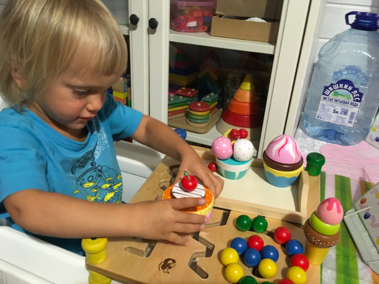 Стенд от Гого - бешеный успех по началу. Принцип выполнения заданий по образцу пока не понял. Из раза в раз Собирал такую улитку, стряпал пирожные, а задания выполняла Мама.