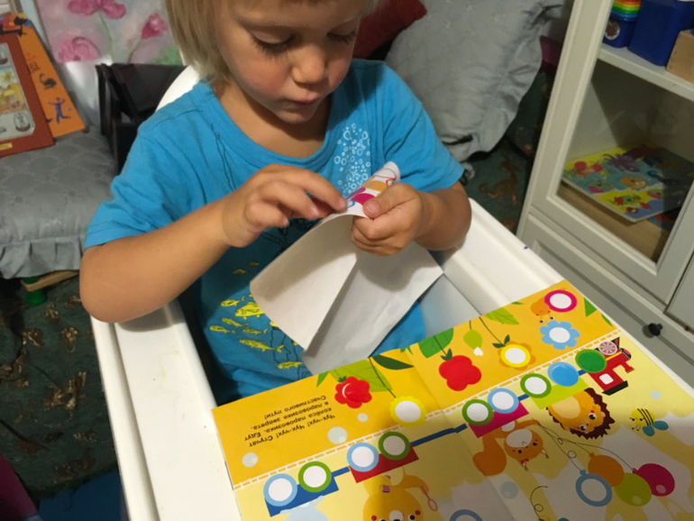 Наклеечки получаются совсем хорошо, но креативит - старается прилепить на другие цвета. Я только поощряю такие решения - смотрится гораздо веселее.