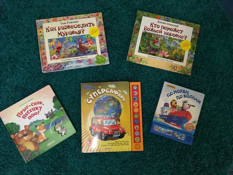 Интерактивные, спасибо Лене за Суперсафари. Реально освобождает минут 20 утром. Муравей и Божья коровка - нереальной красоты книжки- панорамки , сюжетики простенькие, одноразовые.