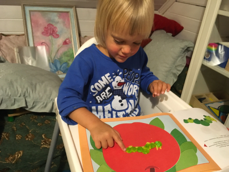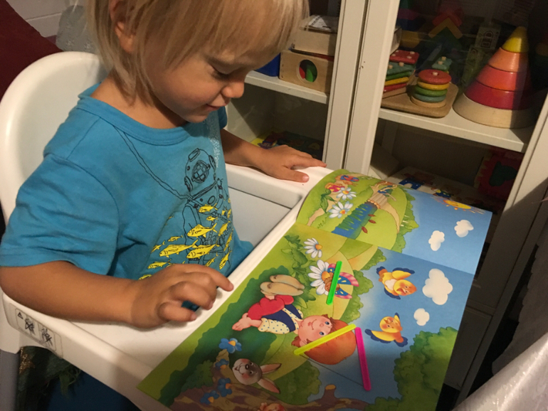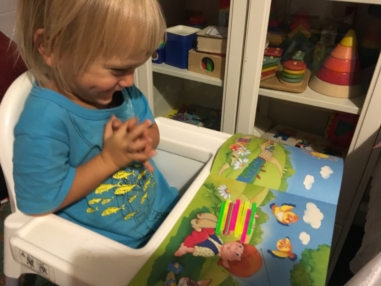 Листаем книжечки, слушаем сказки и песенки, общаемся с папой. Здесь все на высоте.