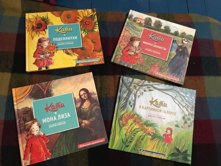 Немного разнообразили знакомство с живописными шедеврами, Благодаря нашим выставочным приобретениям. Начали, естественно , с Кати в картинной галерее Лондона - она волею случая попадает в полотно Анри Руссо. Понравилось очень, слушал, затаив дыхание. Читаем книги, разумеется, частями - слишком сильное впечатление их мощное и красочное оформление производит на ребёнка. Иллюстрации прекрасны, текст доступен, качество на высоте. Вполне оправданное вложение средств. Достала Книги и игры по искусству с аналогичными шедеврами. Потихоньку находим такие же и сравниваем.