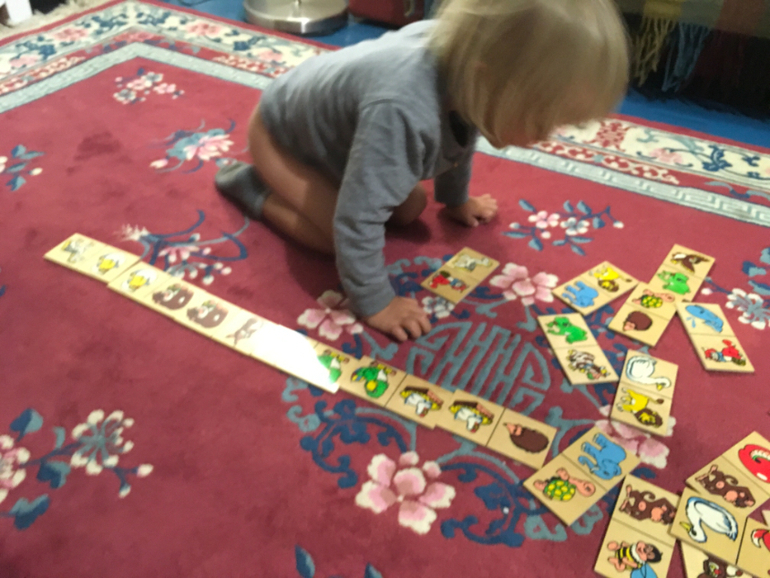 Осваиваем обычное домино с непременным условием, что затем приедут машинки.