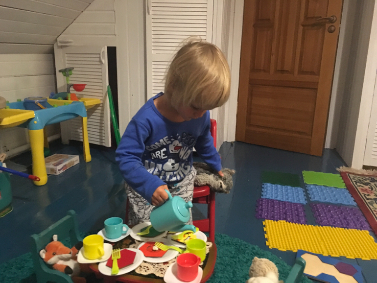 Никак не хочет упорно приживаться театр, поэтому между делом обыгрывали Трёх котят, Кораблик, Мышонка и т.д.