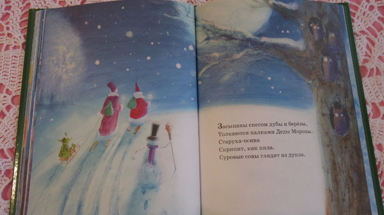 В мире множества книг с глянцевыми страницами спокойный офсет отличается.... Здесь красивые, милые и очень волшебные иллюстрации. Читаю и понимаю, что глаз устал от ярких четких компьютерных иллюстраций...Здесь я отдыхаю)))