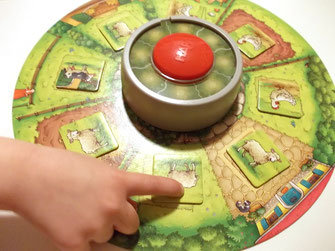 • Свет указывает на стопочку с животными: возьмите одну карточку и положите ее на большую карту «пастбище». Но будьте внимательны: каждый вид животных может помещается только один раз на пастбищную карту. Если этот вид животных у Вас уже есть, Вы ничего не берете.