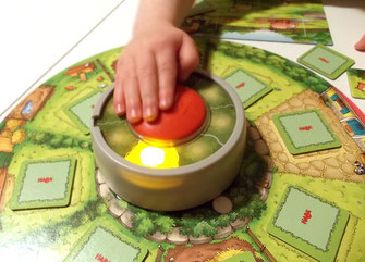 Играйте по часовой стрелке. Тот, кто лучше всех сможет изобразить цыпленка, начинает игру и первым нажимает волшебную кнопку.