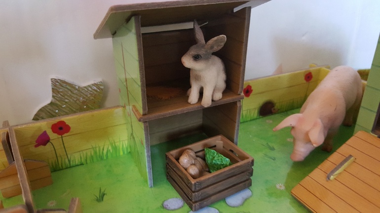Не доделали ещё. Из коробки делаем хлев. Я сюда выложу. Я нашла в интернете женщину. Она мастер по фермам и не только вконтакте https://m.vk.com/id350763827