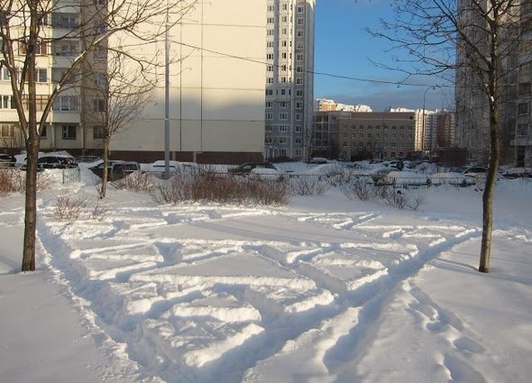 11. Еще мы любим вытаптывать в снегу лабиринты и спирали.