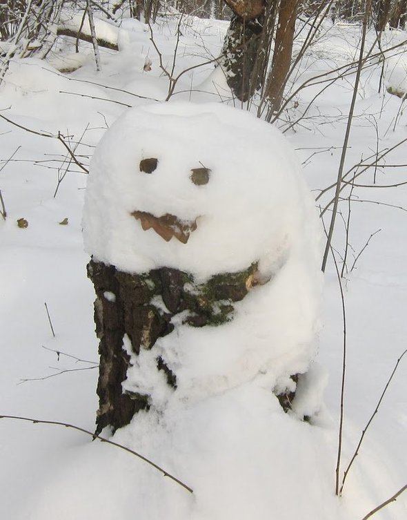 2. Это и снежные рожицы, и звери на деревьях (мокрый снег хорош липнет к стволам деревьев).
