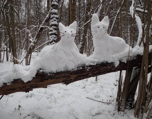 1. Снеговики - это не только два или три снежных шара, поставленных друг на друга. Это и другие самые разные снежные фигуры, например, снежные коты.