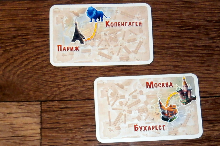 Как только вы проложили непрерывную цепочку вагонов вашего цвета между двумя городами, которые указаны на одной из ваших карт маршрутов, вы прошли маршрут. Сообщите об этом другим игрокам и раскройте карту пройденного маршрута. Затем возьмите еще одну карту с верха колоды маршрутов.
