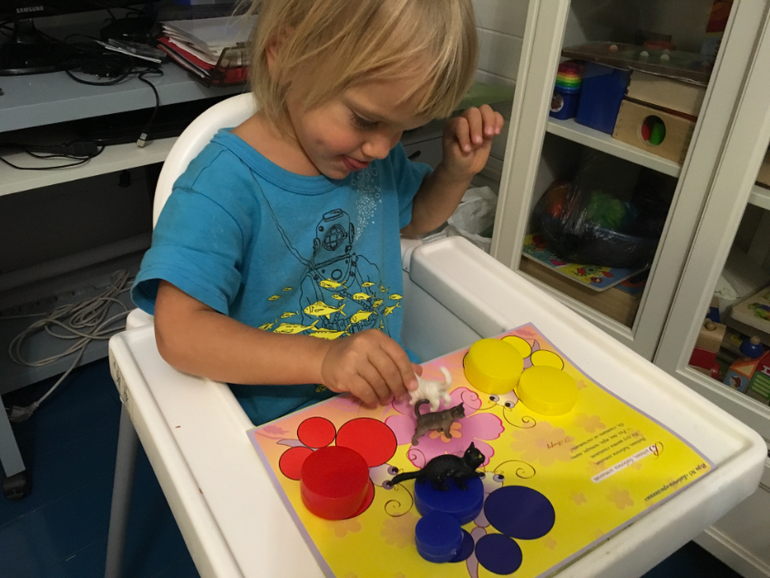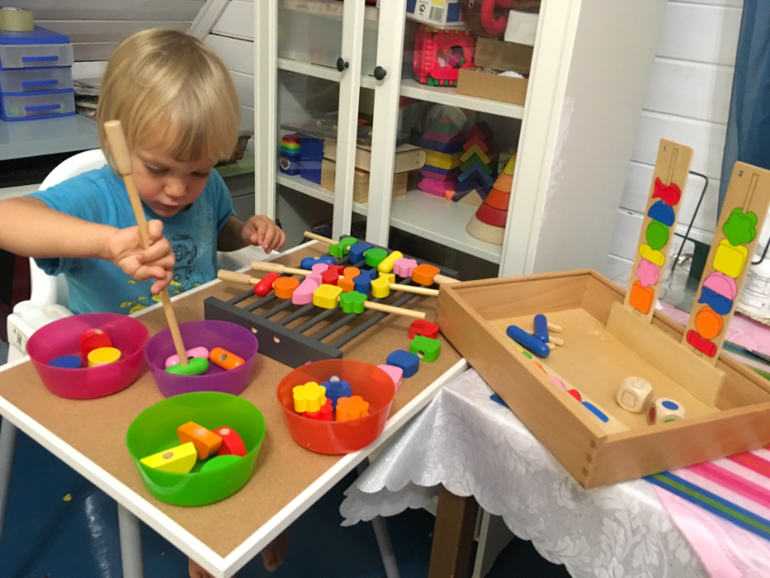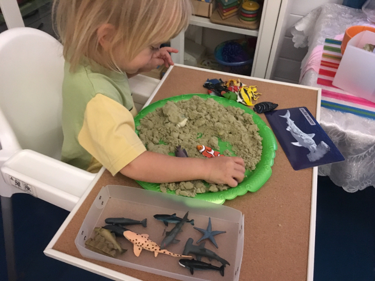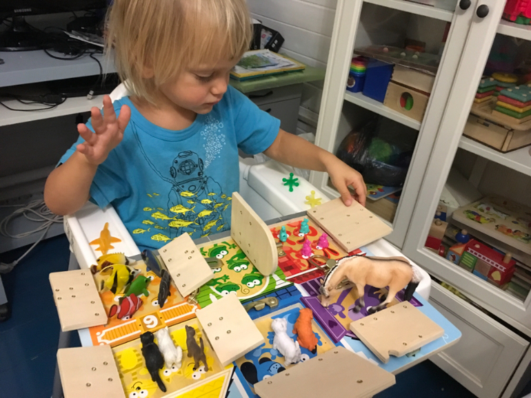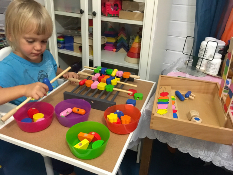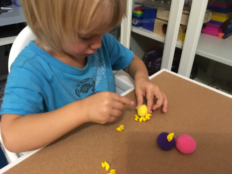 Занимались с кнопочками. Не рекомендую пробковую доску из ИКЕА - очень твёрдая, лучше подходит в качестве какой-то игровой поверхности.