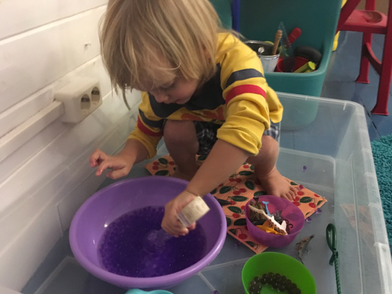 Похоже, что страсть к гидрогелю не ослабеет никогда. Последнее время , просматривая семейные видео, если замечает любимые Игрушки и занятия - настойчиво требует их немедленного воплощения в жизнь.