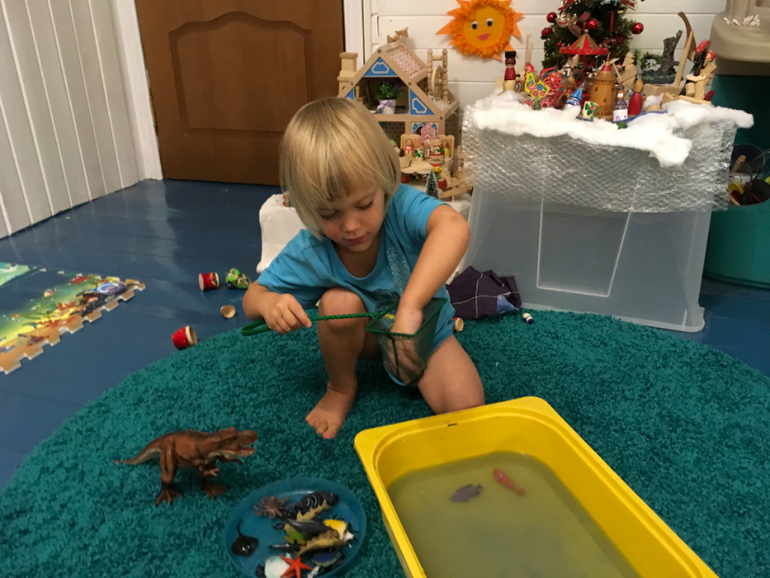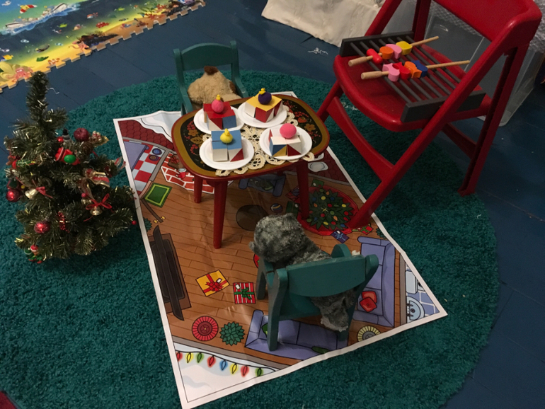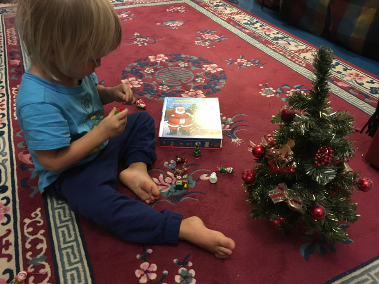 Используем достаточно большой активный словарь тех слов, которые по неизвестным причинам не произносим по-русски. Come, look, ok, let's go, свободно считаем до 10. Арсенал новогодних песенок на английском, слушали весь месяц, так что в ушах до сих пор звенит Jungle bells.