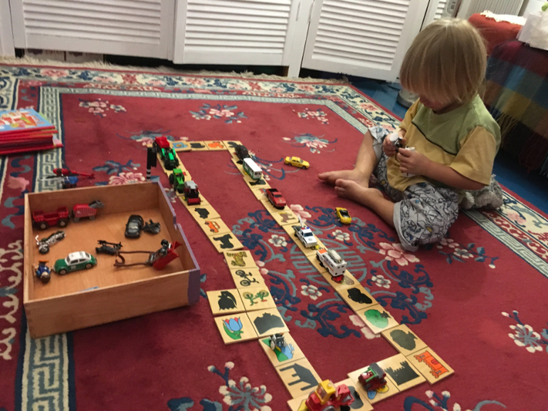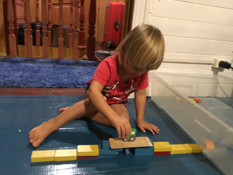 Пытались конструировать из кирпичиков - классический детсадовский, но очень полезный, на мой взгляд вариант. Кое-что получается самостоятельно.