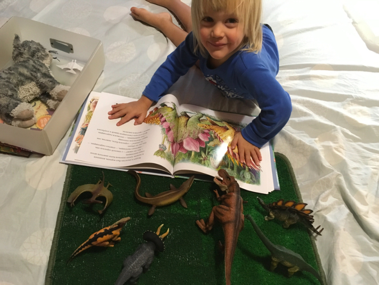 Кати взяла, а что делать? Динозавры волнуют, фигурки есть, книг полно.. но посмотрела я их и решила, что ещё успею покормить дитя энциклопедиями... захотелось начать с художественного варианта. И, знаешь, не прогадала.. и тебе сам Бог велел - ты же собралась Парк Юрского периода строить)