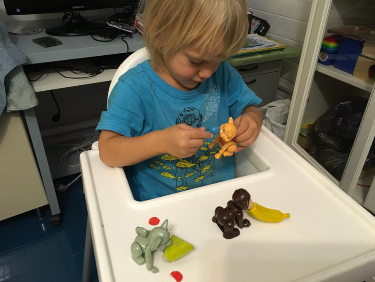Все новое - хорошо забытое старое. Процесс отковыривания макарон с младенческих тактильных дощечек увлёк на длительное время.