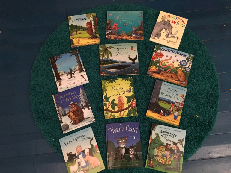 Сделали перерыв в освоении Истории Искусства, зато массово и много читали. Осенило меня, что простаивает у нас Джулия Дональдсон, поэтому достали почти всю серию скопом и начали знакомство по выбору ребёнка.