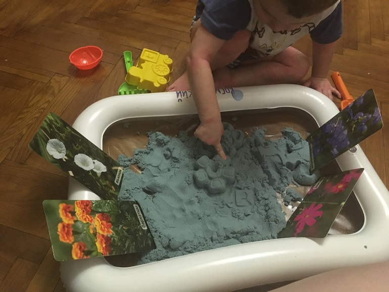 Игры и игрушки для малышей от 1 года до 2х летСлышали выражение «кошмарная двухлетка», или как-то так) Если в России все боятся кризиса 3-х лет, то за границей двух лет. Вот с Мирославом становится все сложнее и сложнее. Есть не хочет, спать не хочет, гулять не хочет, он вообще ничего не хочет, кроме хлеба и попрыгать. У меня очень любопытный, усидчивый сынок, но сейчас его почти невозможно заинтересовать. Так, что и в наших развивашках не так все красочно. Сегодня с третьей попытки получилось его увлечь кинетическим песочком и то, минут на 10. Сначала мы просто лепили куличики, потом сажали цветочки, заодно повторили их. Ещё строили загоны из песка для фигурок животных. Но сын не очень оценил. После ужина сделали одуванчики из ватных дисков, элементарно, и Мирославу понравилось, потому что результат был быстрый. А перед сном, все -таки построили загоны, только из конструктора. Вот, тут Мирослав помогал, был увлечён. По загонам разложили карточки из Мира на ладошке, надо было каждую фигурку поместить в свой домик. Обычная сортировка, но не обычная 😋 игровая) от всего обычного Мирослав отворачивается( Знаю, надо просто пережить, ему же тоже сложно. Характер легко не формируется, но блин, мой глаз, с каждым разом дергается все сильнее и сильнее) а как ваши двухлетки проявляют себя?