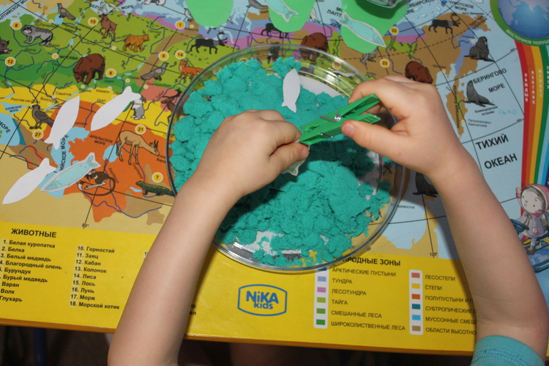 3. Кинетический песок или тесто (любое место, куда их можно воткнуть вертикально).