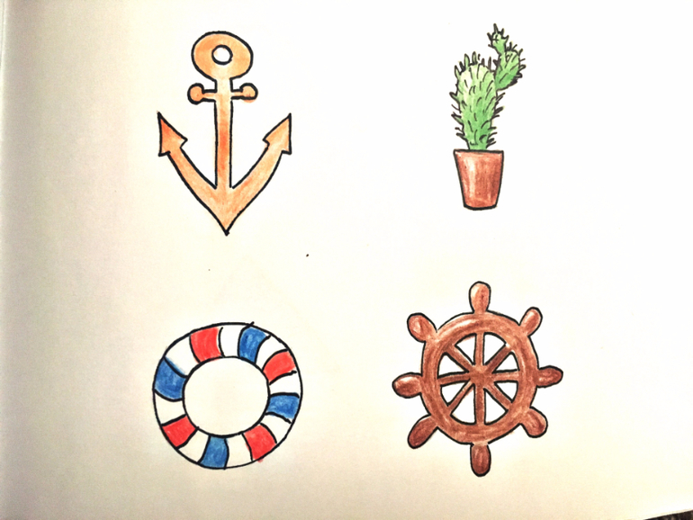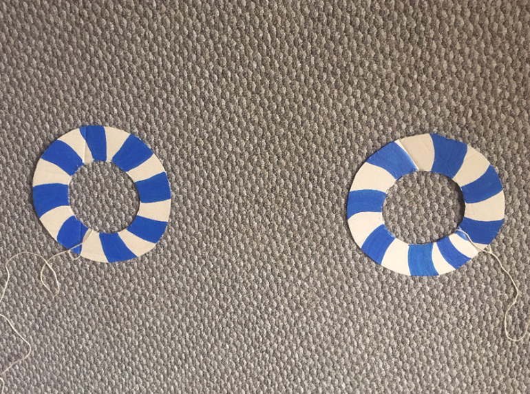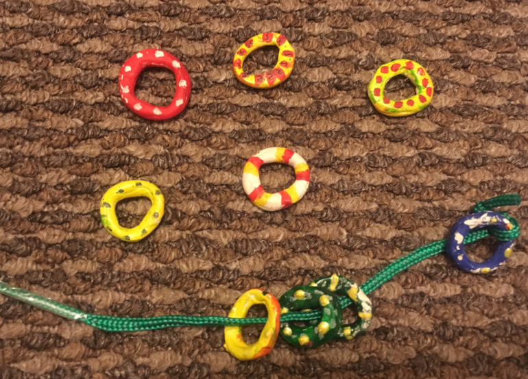 Акула уплыла. Мы убираем все спасательные круги (нанизываем на веревочку)