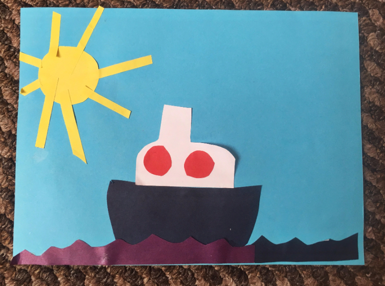 Налетел сильный ветер. Начался шторм. Надо срочно сделать запасные корабли. Делаем из бумаги пароходик.