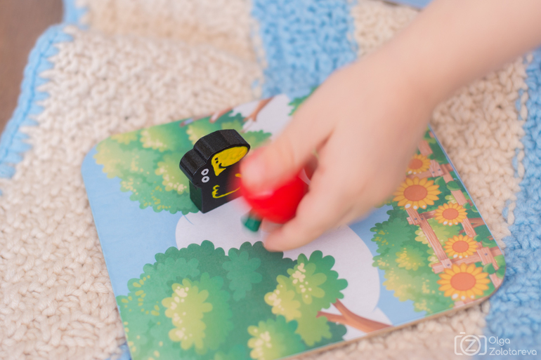😊 На позапрошлой неделе презентовала игру. Рассказала про фруктовые деревья, про то, где что у нас будет расти, про вредного ворона... На удивление, мы играем почти по правилам, разве что изредка Лида срывает один фрукт вне очереди, просто потому что очень хочется. Я стараюсь не обращать на это внимания. И ещё мы любим кормить бедняжку ворона, особенно если он проиграет, и на деревьях не останется ничего. Или в процессе игры срываем положенный фрукт, и не в корзинку его, а ворону - на! Это очень умиляет.