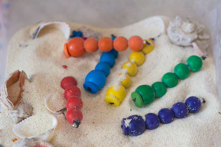 Некоторое время червячки просто участвовали в наших играх с сыпучестями, и только совсем недавно я начала снова предлагать найти нужный цвет. Прогресс налицо, конечно, спустя несколько месяцев: уже совсем иначе малыш ведёт себя, ей нравится выполнять задания и думать. Но всё равно для полноценной игры ещё рано нам, да и жетоны я почти не использую.