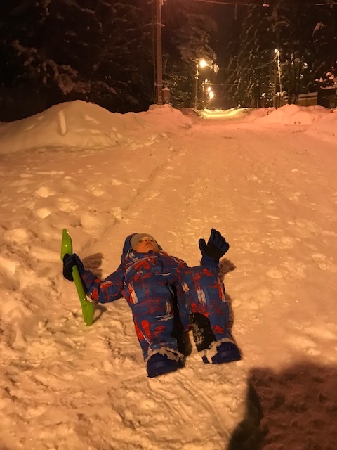 Научились кататься и сбегать с горки, экспериментировали с лопатой.