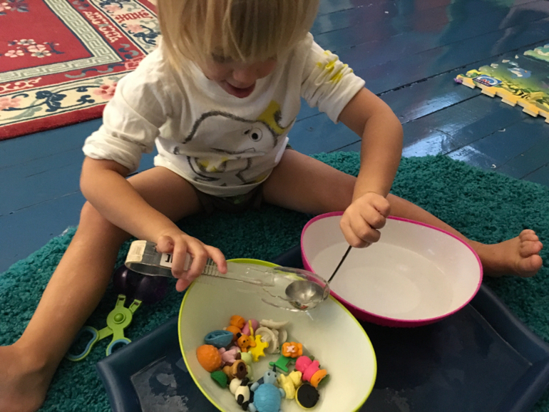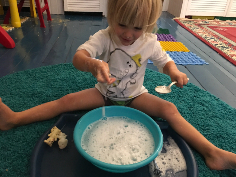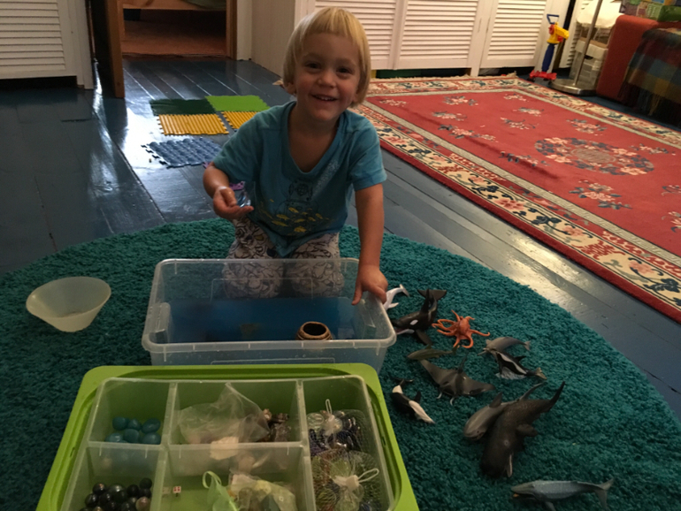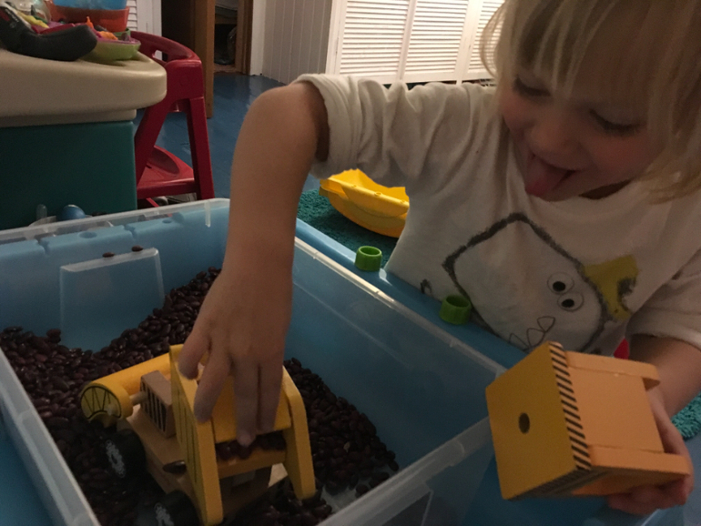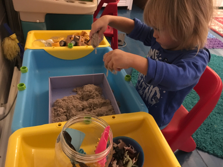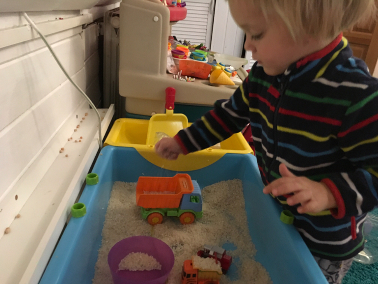 Если раньше в числе моих постоянных спасителей числились мультя, овощерезка, посудомойка и робот-пылесос, то минувшей зимой список пополнился ещё одним гениальным изобретением человечества - домашней песочницей. Это фактически наше постоянное рабочее место. Играем в ней ежедневно крупой, водой, песком и всем, чем угодно. Затычка на донышке позволяет легко и безболезненно вычистить или вылить содержимое.
